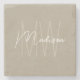 Modern Monogram Name Script Beige Stone Coaster