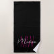 Modern Monogram Name Script Black Pink Beach Towel