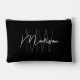 Keep your essentials organised in style with this Modern Monogram Name Script Black and White Accessory Pouch. Featuring a personalised initial and name in an elegant modern script, this custom zippered pouch is perfect for storing makeup, stationery, travel essentials, or tech accessories. The black and white tones add a timeless and sophisticated touch, making it a great gift for women, bridesmaids, students, or professionals. Ideal for daily use, travel, or work, this custom name pouch is a stylish and practical accessory for anyone who loves personalised gifts.