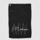 Modern Monogram Name Script Black White Golf Towel