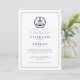 Modern Monogram Nautical Wedding Invitation with ship anchor in navy blue and white is idea for a marina, ship, sea, beach or coastal wedding.