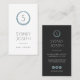 Promote your jewellery design business with these elegant vertical business cards. Design features a pearl or beaded necklace illustration in muted slate blue, with a single initial monogram inside and two lines of custom text beneath in chic charcoal grey. Add your jeweller business contact details to the reverse side, along with your social media username. To reveal additional social media icon options, open the design tool.