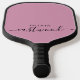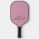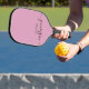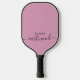 A modern minimalist monogrammed pickleball paddle design featuring a black script and sans serif typography, on a dusty pink background.