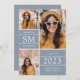 Modern Monogram Photo Collage Dusty Blue Announcement