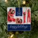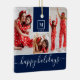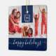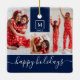 Modern Monogram Photo Collage Happy Holiday Navy Ceramic Ornament