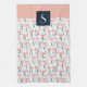 Modern Monogram pink Flamingo Pattern Tea Towel