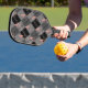 Modern Monogram Plaid Grey Black Pink Pickleball Paddle