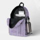 Chic and Stylish, this Modern Monogram Printed Backpack features purple and lilac / lavender lines arranged in a whimsical and unique geometric pattern. Easily customise the name for a personalised touch.