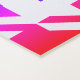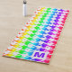This yoga mat features a white geometric houndstooth pattern over a rainbow gradient background. Personalise it with your monogram in a matching shade at the bottom right corner.