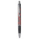 Stylish red and grey monogrammed pen with elegant maple leaf art.