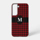 Modern Monogram Red Plaid Pattern Samsung Galaxy S22 Case.