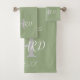 Modern Monogram Sage Green White Wedding Bath Towel Set