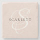 Modern Monogram Script Blush Pink Custom Name Stone Coaster