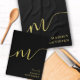 Modern Monogram Script Calligraphy Black Gold Name Flask. Easy to customise elegant script typography monogram. Perfect monogrammed name gift idea!