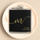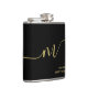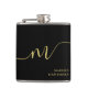 Modern Monogram Script Calligraphy Black Gold Name Hip Flask