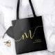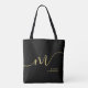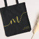 Modern Monogram Script Calligraphy Black Gold Name Tote Bag