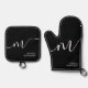 Modern Monogram Script Calligraphy Black White Oven Mitt & Pot Holder Set