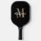 Modern personalised custom colour pickleball paddle featuring a monogram and name shown in an editable hand-lettered script name in changeable black, gold and white colours for the pickler or pickleball enthusiast. COLOR CHANGES: Change the text or background colours or add a styled graphics background by clicking on the EDIT tab in the PERSONALIZE section to create your own custom design. PADDLE OPTIONS: Choose from Black, Tan or White edging and grip colours on the ordering page. ASSISTANCE: For help with design modification or personalisation, colour change, transferring the design to another product or if you would like coordinating items, contact the designer BEFORE ORDERING via the Zazzle Chat MESSAGE tab below or email makeitaboutyoustore@gmail.com.