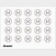 Modern monogram snowflake pattern Christmas holiday sticker. This holiday sticker features your monogram in black in a white round frame with red outline. There is a pattern of white snowfakes on grey around it.
