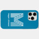 This modern monogram teal iphone 15 pro max case is trendy yet and classic. It features your first or last initial in a bold trendy font and your name in a coordinating classic font in white. It's simple and minimal, chic and bold.
