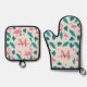 Modern Monogram Tropical Leaves Hot Pink Flamingo Oven Mitt & Pot Holder Set