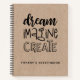This personalised girly 8.5 x 11 sketchbook has black text on a kraft clored background. The words, "DREAM,IMAGINE,CREATE" in a hand drawn font personalised with your name below. Customise the sketchbook with the name of your choice to make someone feel extra special. Makes a fun gift for birthdays or for Christmas. Comes in a variety of colours. Designed for you by Blackberry Boulevard.