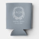Modern Monogram Wedding Dusty Blue Crest Can Cooler