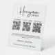 Modern Monogram wedding honeymoon fund QR code Pedestal Sign