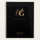 Minimalist gold monogrammed script against a black background - 2026 planner. Easily customise name and monogram of choice on front and back.