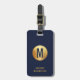 Modern monogrammed brushed metallic gold effect luggage tag which can be personalised with the inclusion of your choice of monogram initial and name on the front and if you choose the double sided option, an address on the back. The gold is a brushed metallic gold look (not real gold). The gold is stylish and professional against a dark blue background. This luggage tag has been created to have a more masculine feel. This luggage tag can be used for personal or professional travel.