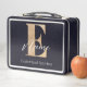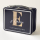 Modern Monogrammed Initial E & Name Personalised Metal Lunch Box
