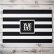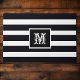 Modern Monogrammed Initial Elegant Classic Black And White Striped Outdoor Front Door Doormat. Click personalise this template to customise it with your own monogram initial quickly and easily. Ships Worldwide Fast.