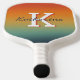 Modern monogrammed cool gradient effect pickleball paddle for the pickleball player in your life. This pickleball paddle can be personalised with the inclusion of your choice of monogram initial and name - both of which will appear on the front and back. This Pickleball Paddle is ideal for wide range of players and experience. Featuring a hand wrapped grip and fiberglass & polypropylene honeycomb core, this lightweight paddle offers excellent feel and ample power for the competitive player. The smooth hitting surface and conventional shape allows for a bigger sweet spot for more solid contact. An ideal gift for the pickleball lover in your life, for any special occasion.