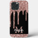 Modern Monogrammed Rose Gold Glitter Drips Case-Mate iPhone Case