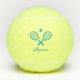 These tennis balls are perfect for being able to easily determine which balls on the court are yours. They're modern and unique and will be easy to spot so that ball collecting doesn't delay your game. They are personalised with your name in a modern script font in teal underneath 2 crossed tennis racquets with a ball. Get a couple of cans. You can never have enough balls.