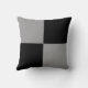 A modern throw pillow design with a neutral black and white square block pattern background. Shows a pattern in white which can be amended by changing the initial.