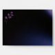 A rose and a few branches of eucalyptus greenery, hand-drawn in colour pencil and layered with shades of dusty and dark purple, make for a modern, sophisticated, elegant yet chic wedding envelope. The black and dark blue background with hints of purple and lights illuminate the midnight sky.