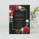 Modern Moody Dark Red Roses Black Wedding Invitation
