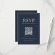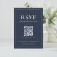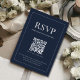 The design features a bold, dark background framed by our signature thin border. At the center, a high-contrast QR code allows your guests to instantly access your wedding website to RSVP,view event details - all with a single scan.