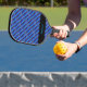 Modern mosaic in black, royal blue, custom pickleball paddle