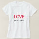 Modern motivational love not hate calligraphy T-Shirt. Text can be personalised. Motivational T-Shirt ideal for all ages!