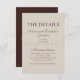Share important info with style using this Modern Mousse Brown Wedding Details Enclosure Card, designed with clean typography and a warm neutral tone. The back features a convenient QR code linking guests to your reserved hotel block or accommodations page. Sleek, simple, and functional, this card is perfect for couples who want to keep guests informed while maintaining a cohesive, minimalist aesthetic.