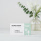 A modern looking business card with silhouettes of hedge shears, a lawn rake and spade over a pastel green background. It communicates a sense of tidiness and order perfect for those in the business of lawn mowing and maintenance, weed control and landscaping. Personalise with your business information in the text templates provided. You can change the background colours to fit your corporate colours.