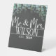 Modern Mr & Mrs Established Eucalyptus Wedding Pedestal Sign