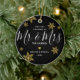 A stunning simplistic christmas ornament to celebrate a couples first christmas as Mr. & Mrs. Featuring a classic black background decorated with faux gold glitter snowflakes, a template that is easy to customise and the option to upload a photograph of the back.