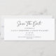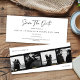 This modern yet elegant save the date card features a filmstrip photo frame with four photos and classic typography on the front. There is plenty of space on the back of the card for all the important details plus a modern calligraphy script "Save The Date" greeting. Background, greeting, and text colors are customizable. *If your photo is color and you would like it to be black and white, simply use the photo filters in the editor tool.