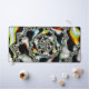 This desk mat features an abstract, psychedelic spiral fractal art in black and white with yellow, orange, blue, and green accents. Great for gaming rooms or boys’ bedroom.