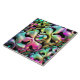 This tile is decorated with a trendy iridescent pattern. It has different colour reflections depending on the angle of view and the light. The abstract pattern uses different shades of colour to create an iridescent effect. This type of tile is often used to add texture and colour to a room, and can be used to create an interesting focal point in a kitchen, bathroom or other living space.