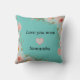 Create your own modern and stylish mum and daughter keep sake photo collage throw pillow on teal and light green background. Design features 4 photo collage with pink peach flowers bouquet and mother daughter quotes ,pink heart and personalised name with flower bouquet and name back side. A beautiful Mother's day, Birthday , Valentine's day or Christmas gift for your Mother to show her how much you love and appreciate her.