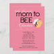 Start your Bee Baby Shower off right with our modern & cute Mum to Bee Baby shower invitation. Our trendy bee invite features the cutest little bubble honey bee set on a pink background. The Back of the invite features another sweet bee. Perfect for a girl baby shower. Visit our shop for matching thank you note cards, stickers & postage stamps.